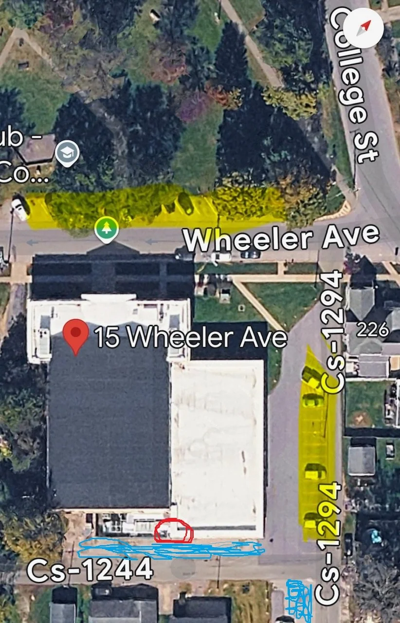After two weeks in Berea it looks like we’re going to be in Winchester at the Clark County Parks and Rec Center (AKA the College Park center) Click on the map link for directions. Admission is $10 per person. Drop your boat off in back (picture below) and go upstairs to the 2nd floor to pay before coming into the pool. Best place to drop your boat is circled in red below. You can park in any of the yellow areas and the blue is fair game for overflow. Make sure your boat is clean and contact us at info@BluegrassWildwater.org if you need to borrow gear.